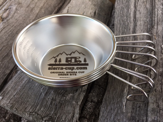 シェラカップ同士を重ね合わせると、スッキリと収納でき、かさばりません。また、取っ手が付いていることからどこにでも引っ掛けられる点など、まさにキャンプなどでのクッキングギアアイテムです。